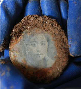 小圓鏡內(nèi)夾有一張年輕女性的照片
