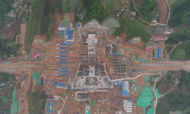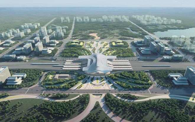 站房設(shè)計(jì)理念以“生態(tài)京山,觀鳥天堂”為主題,立面形成三層流暢的曲線造型,通過層層的推進(jìn),形成飛鳥展開的羽翼,打造舒展柔軟的建筑形象。設(shè)計(jì)提取京山“京”字筆畫,運(yùn)用抽象化建筑語言描摹“京”字之形,形成流暢的建筑形體。目前,車站樁基施工完畢,基礎(chǔ)承臺(tái)建設(shè)完成三分之二。