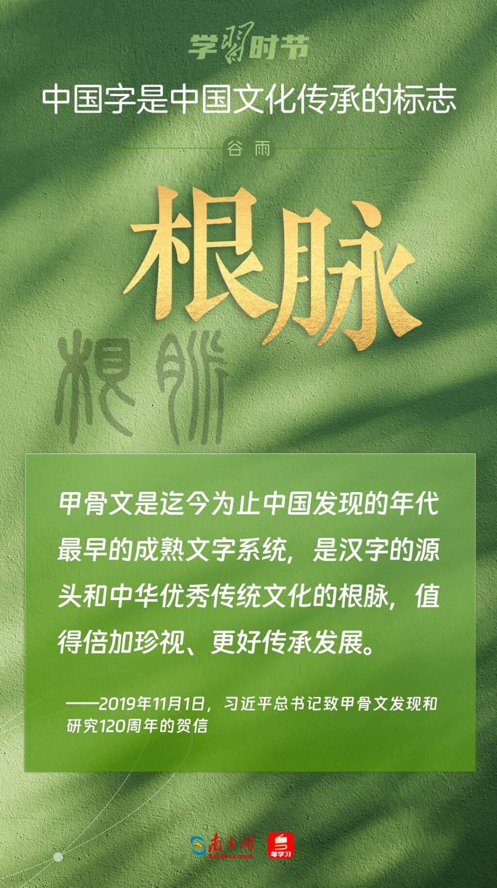 谷雨將至,讓我們一起學(xué)習(xí)習(xí)近平總書記談漢字、談文化傳承的經(jīng)典話語,感悟和領(lǐng)略中華優(yōu)秀傳統(tǒng)文化的魅力。