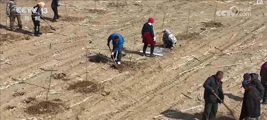 甘肅省金塔縣地處河西走廊—塔克拉瑪干沙漠邊緣阻擊戰(zhàn)的前沿陣地。在金塔縣萬畝梭梭林里,200多名工人正在種植梭梭幼苗,大家分工協(xié)作、配合默契、干勁十足。這些梭梭幼苗,年底將會長成一米多高的小樹。