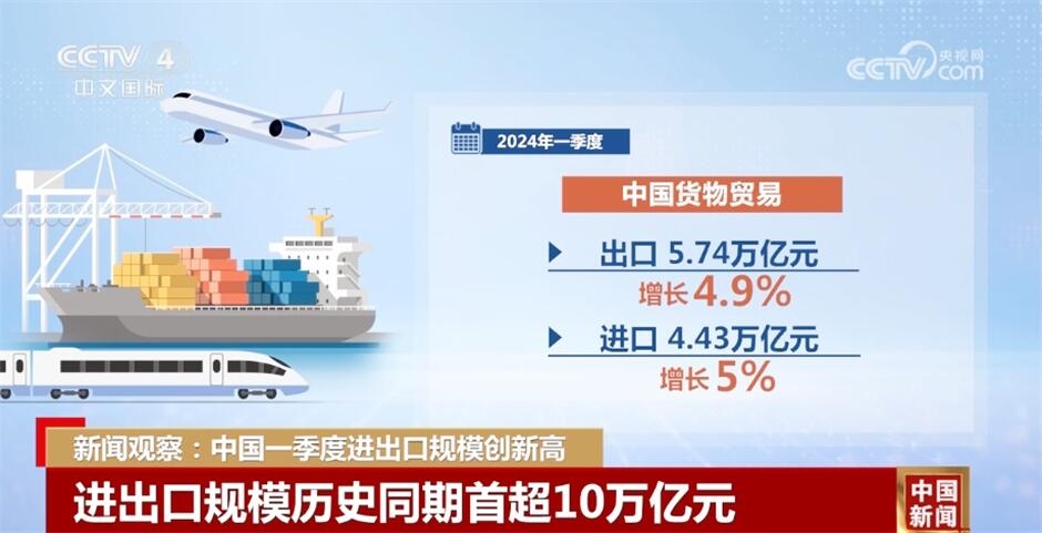 按美元計值,2024年3月,我國國際收支貨物和服務貿(mào)易出口2916億美元,進口2780億美元,順差137億美元。