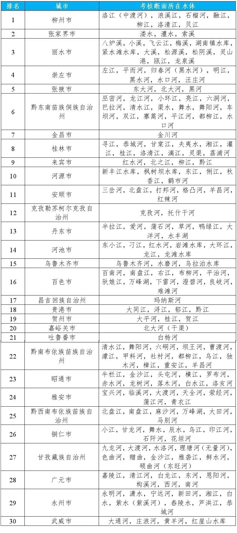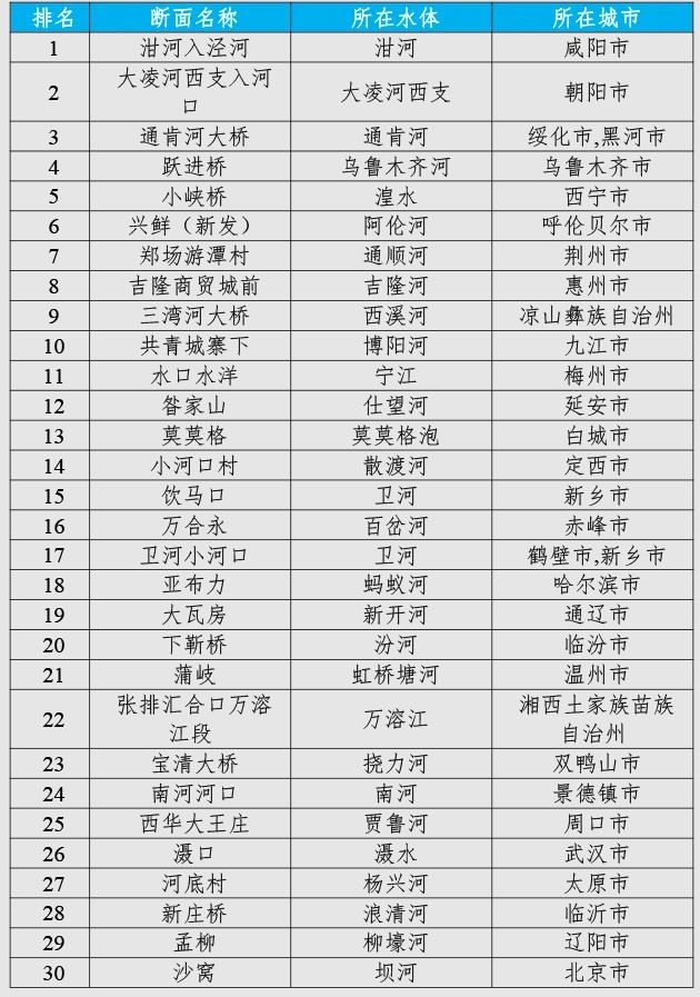 地級(jí)及以上城市國(guó)家地表水考核斷面排名
