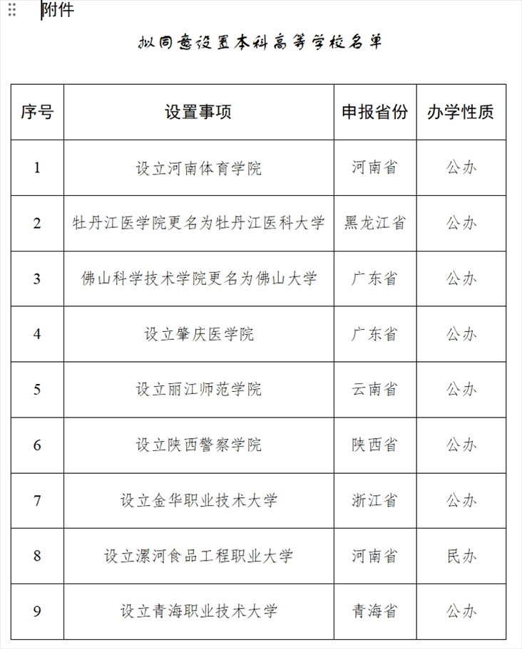 ·教育部:擬同意設置佛山大學等9所本科高校。