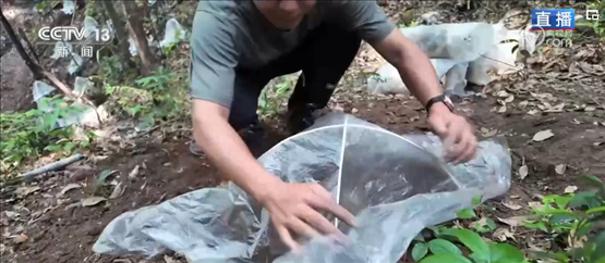 將菌棒種下后,還需要將靈芝保護(hù)起來。漫山遍野立著的一個個拱形小棚子就是靈芝的“保護(hù)罩”,在覆土種植后,工人們會搭建起小拱棚,將菌棒口包裹在內(nèi),可以有效防澇、防旱、防蟲,還能提高棚內(nèi)的二氧化碳濃度,讓生長出來的靈芝品質(zhì)更高。菌棒種下后,到7月就可以對第一撥靈芝進(jìn)行采收,到10月第二撥靈芝就已經(jīng)長成。在森林中種出的紫靈芝質(zhì)地堅硬、形態(tài)飽滿。
