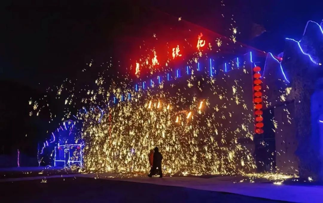 “長(zhǎng)城鐵花”是長(zhǎng)城腳下的人們?cè)谵r(nóng)閑時(shí)表演來(lái)祭祀、娛樂(lè)、祈求風(fēng)調(diào)雨順、生活美滿(mǎn)的一種民間文藝活動(dòng)。當(dāng)鐵水溫度達(dá)到1600至1800攝氏度時(shí),用木勺擊打鐵水,鐵花四濺,猶如天女散花,甚是絢麗壯觀。