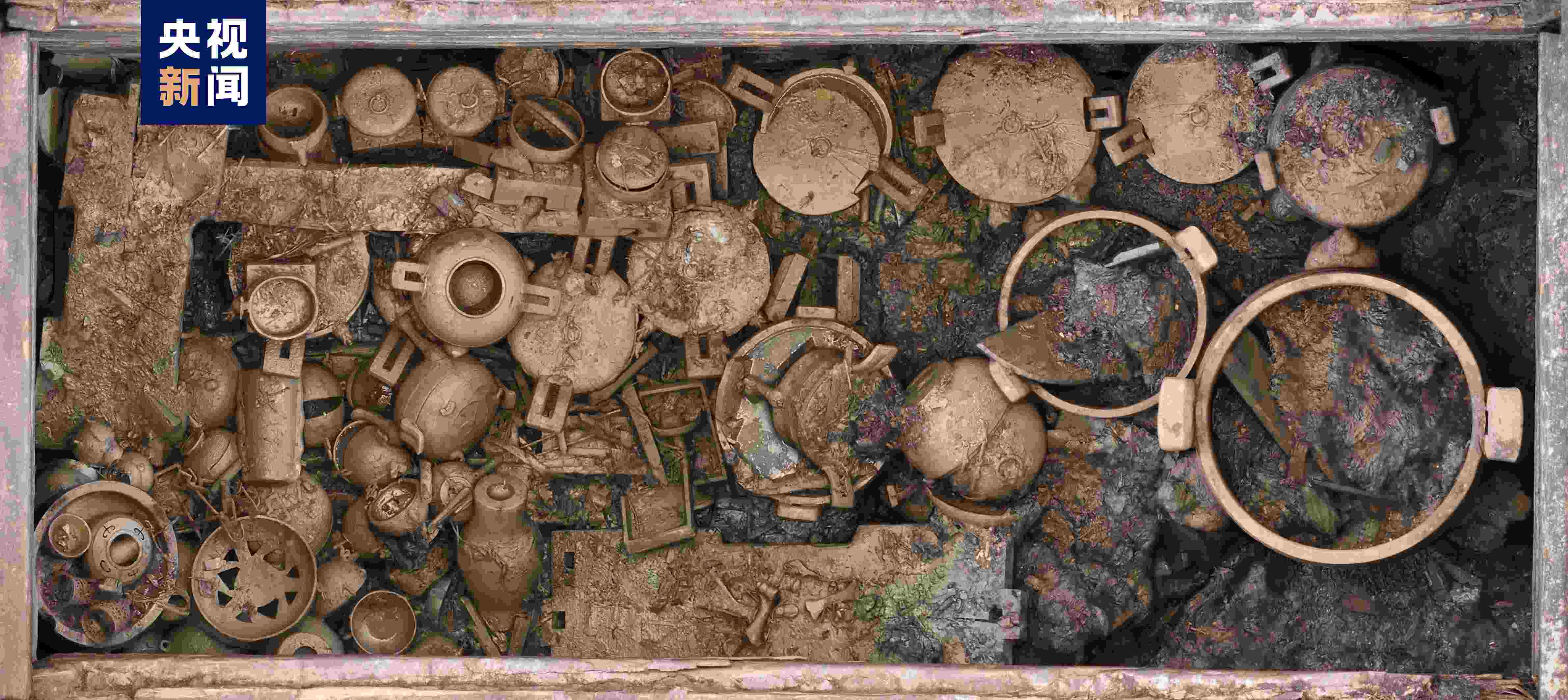 研究團隊在考古發(fā)掘現(xiàn)場搭建霧化噴淋系統(tǒng),有效控制槨室內(nèi)微環(huán)境,避免了槨板、漆木器等有機質(zhì)文物因溫度升高、水分蒸發(fā)而開裂與變形。