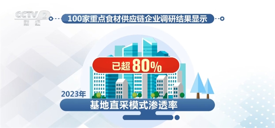 我國食材供應鏈企業(yè)鏈條逐漸向上游延伸。100家重點食材供應鏈企業(yè)調研結果顯示,2023年基地直采模式滲透率已超80%,有效縮短供應鏈鏈條,降低食材采購和流通成本。