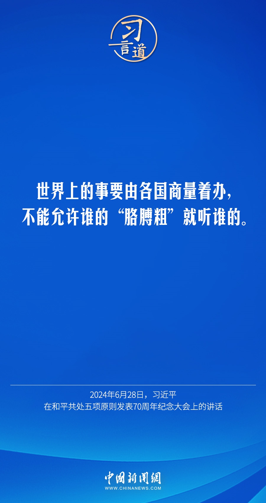 6月28日,國家主席習近平在北京人民大會堂出席和平共處五項原則發(fā)表70周年紀念大會并發(fā)表重要講話。習近平指出——