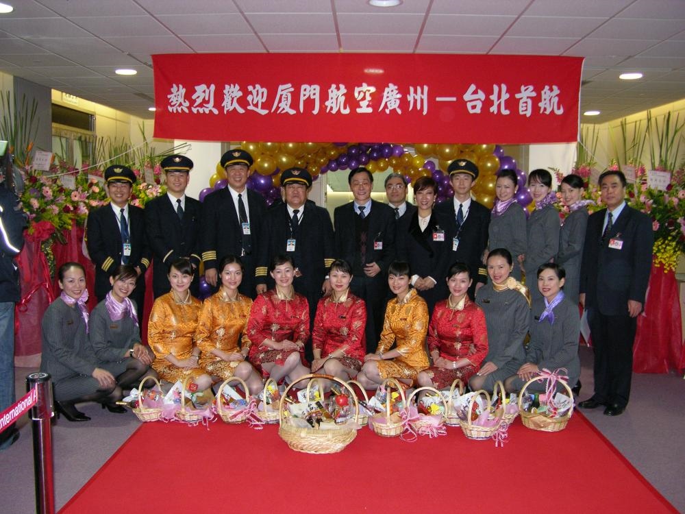 2006年,廈航作為新增廈門航點(diǎn)的唯一運(yùn)營航空公司,執(zhí)行了廈門-臺(tái)北、廈門-高雄航線的包機(jī)任務(wù)。這是首航儀式現(xiàn)場。