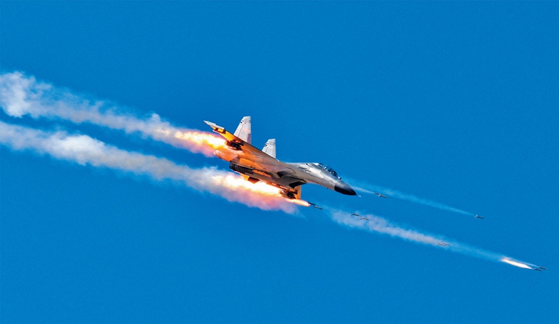西部戰(zhàn)區(qū)空軍航空兵某旅緊貼任務(wù)需要,堅(jiān)持不懈大抓實(shí)戰(zhàn)化軍事訓(xùn)練,加強(qiáng)重難點(diǎn)課目專攻精練。圖為2023年10月該旅在訓(xùn)練中發(fā)射火箭彈。 喻澤琪/攝