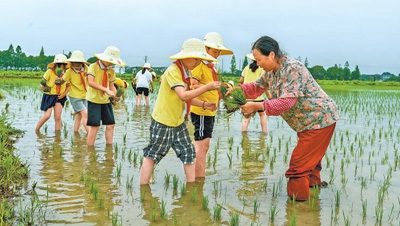 圖為學(xué)生們在體驗插秧。王棟棟攝