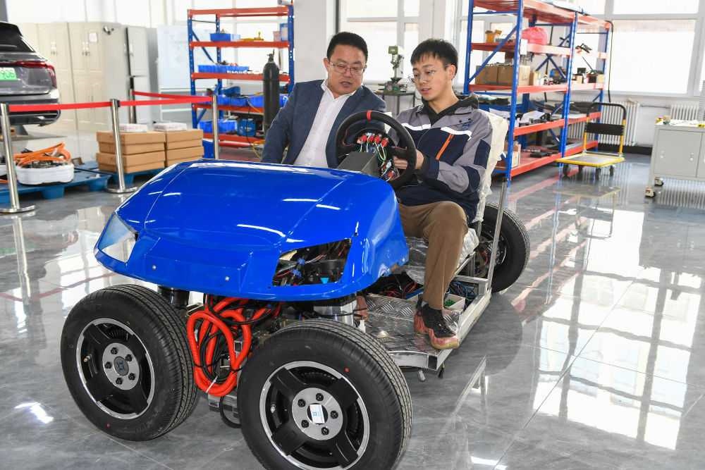 2024年3月13日,在吉林長春一家汽車科技企業(yè),吉林大學(xué)汽車工程學(xué)院教授靳立強(左)試乘智能底盤樣車。2023年,長春市科技局和吉林大學(xué)共建吉林大學(xué)概念驗證中心,一手對接高校,一手對接企業(yè),確保科研成果在技術(shù)路線和商業(yè)模式上的可行性,實現(xiàn)“從0到1”的轉(zhuǎn)化。