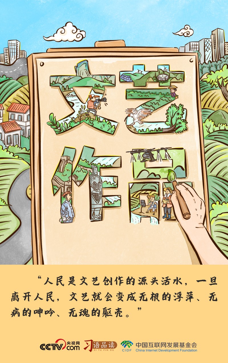 2014年10月15日,在文藝工作座談會上,習近平總書記深刻揭示了文藝創(chuàng)作與人民之間的聯(lián)系。他指出,人民是文藝創(chuàng)作的源頭活水,一旦離開人民,文藝就會變成無根的浮萍、無病的呻吟、無魂的軀殼。一系列反喻表意強烈,引人深思,強調(diào)了堅持以人民為中心的創(chuàng)作導(dǎo)向。