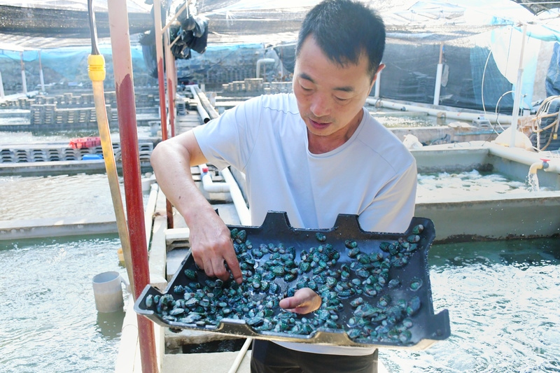 澳角村鮑魚(yú)養(yǎng)殖戶(hù)郭漢棟正在查看鮑魚(yú)苗長(zhǎng)勢(shì)(央廣網(wǎng)記者 羅曉英 攝)