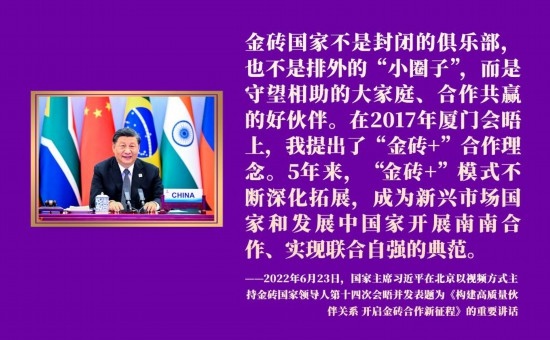 面向未來(lái),金磚國(guó)家敞開大門謀發(fā)展、張開懷抱促合作。中國(guó)將攜手金磚伙伴,推動(dòng)“大金磚合作”不斷取得新成果。