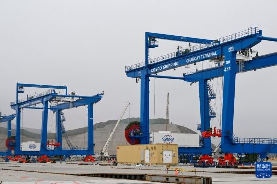這是6月21日在秘魯錢凱港拍攝的碼頭操作區(qū)。 新華社記者 李木子 攝