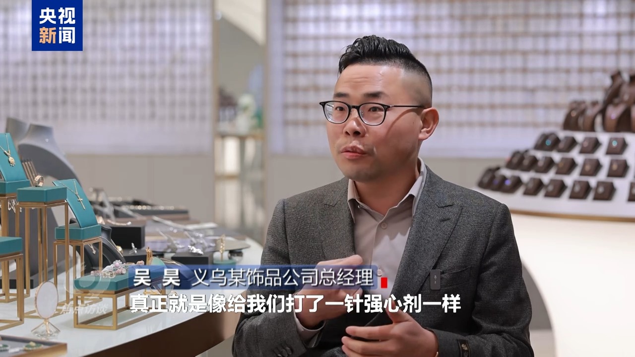 義烏某飾品公司總經(jīng)理 吳昊:總書記提出了國內(nèi)國際雙循環(huán)的事,對我們企業(yè)來說,真正就是像給我們打了一個強心劑一樣,就是堅定了我們未來發(fā)展方向,企業(yè)就沒有那么迷茫了。