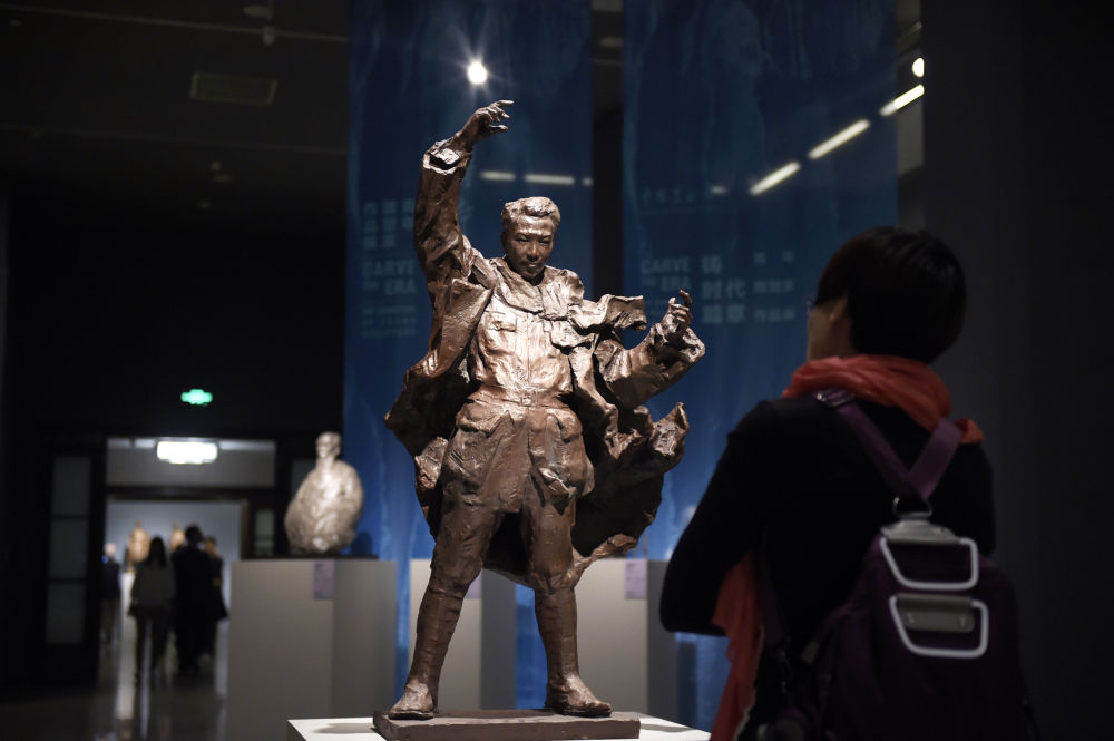 2018年4月1日,參觀者在北京的中國(guó)美術(shù)館參觀雕塑作品“冼星?!薄P氯A社記者 魯鵬攝