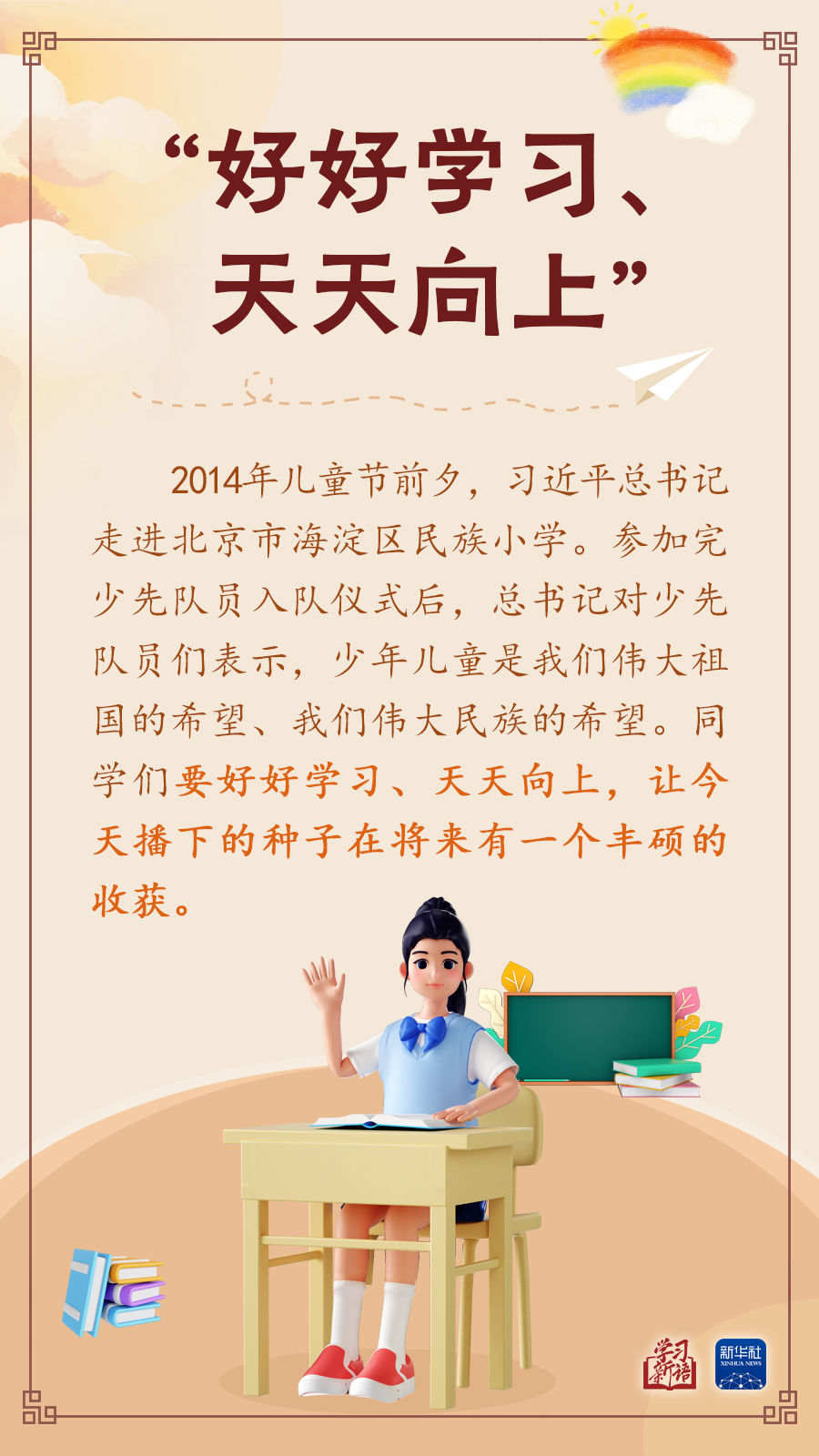 讓孩子們成長(zhǎng)得更好,習(xí)近平總書記始終牽掛于心。本期“學(xué)習(xí)新語(yǔ)”,我們擷取總書記關(guān)心少年兒童健康成長(zhǎng)的一些場(chǎng)景,感悟總書記對(duì)“祖國(guó)花朵”的真摯關(guān)懷和殷切期望。