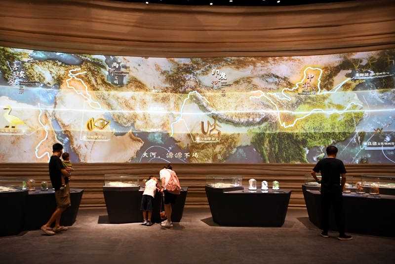 6月14日,參觀者在大河村遺址博物館新館參觀。