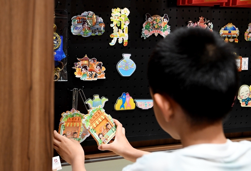 6月14日,游客在大河村遺址博物館新館文創(chuàng)區(qū)選購(gòu)產(chǎn)品。