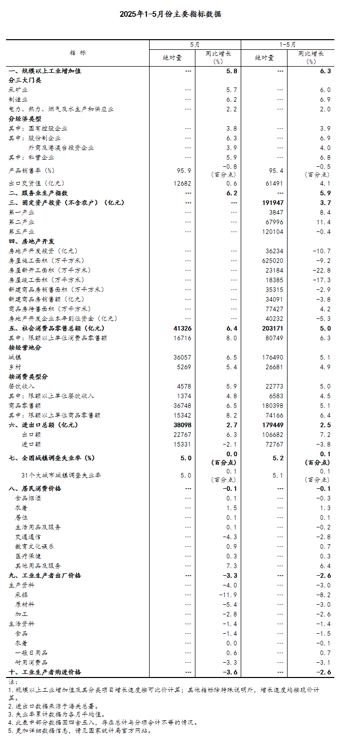國(guó)家統(tǒng)計(jì)局:5月份國(guó)民經(jīng)濟(jì)運(yùn)行總體平穩(wěn)、穩(wěn)中有進(jìn)