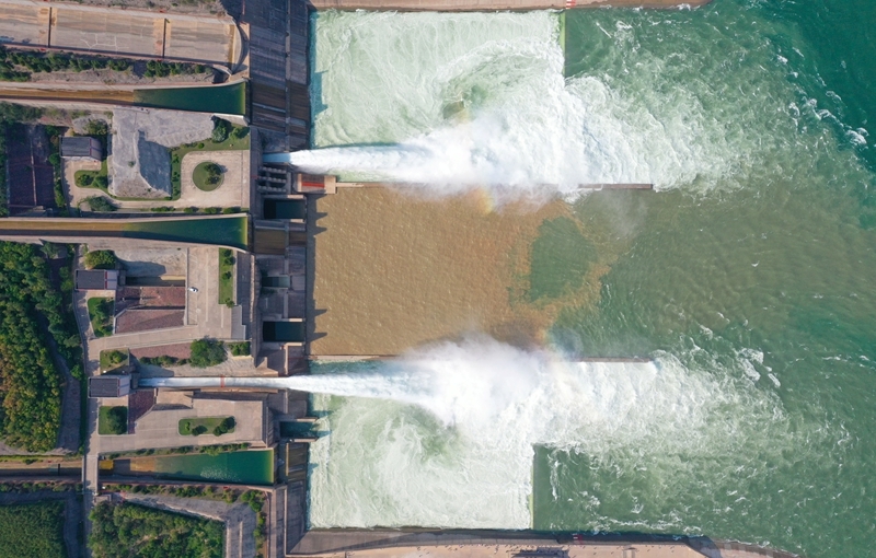 這是6月23日在河南濟(jì)源拍攝的小浪底水利樞紐工程調(diào)水調(diào)沙現(xiàn)場(chǎng)(無人機(jī)照片)。
