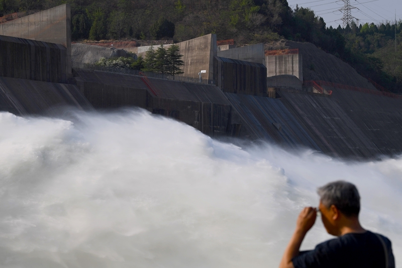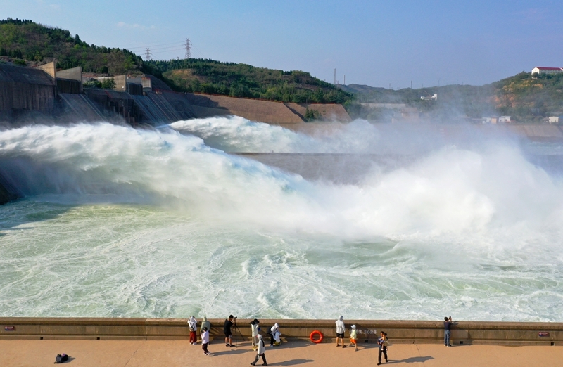 6月23日,游客在小浪底水利樞紐工程出水口觀看調(diào)水調(diào)沙。