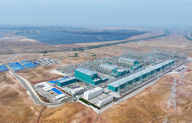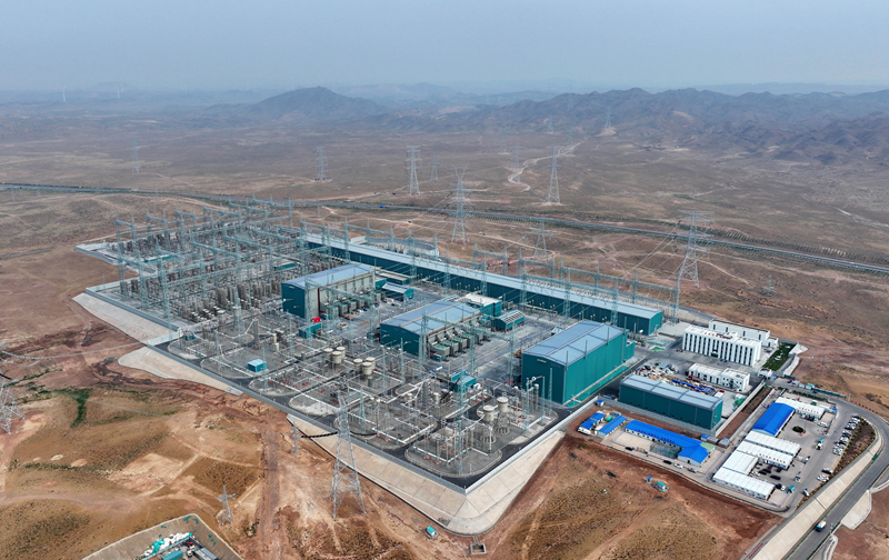 這是6月24日拍攝的“寧電入湘”工程寧夏中衛(wèi)市中寧換流站(無人機照片)。