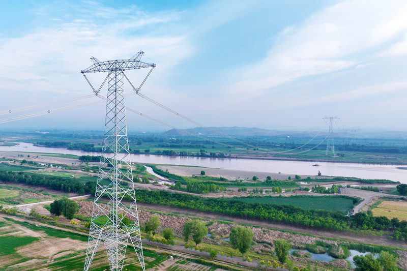 這是6月29日拍攝的“寧電入湘”工程寧夏中衛(wèi)市境內(nèi)跨黃河段線路(無人機照片)。