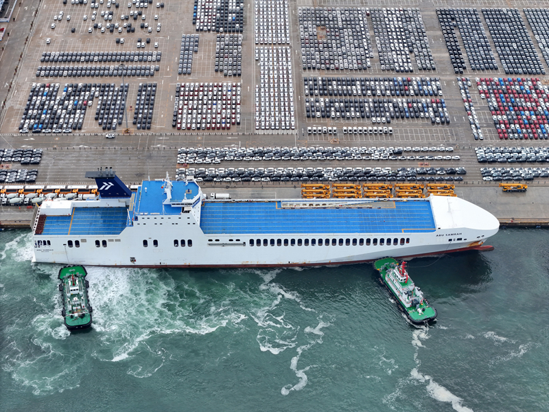 連日來,在山東港口煙臺港,大批出口車輛集結(jié)待發(fā),汽車運輸船穿梭往來,一派繁忙景象。今年1—5月,煙臺港完成商品車運量29.6萬輛。目前,煙臺港已實現(xiàn)全球主要商品車碼頭全覆蓋、全聯(lián)通,形成“以航線帶貨源、以貨源促航線”的良性循環(huán)。
