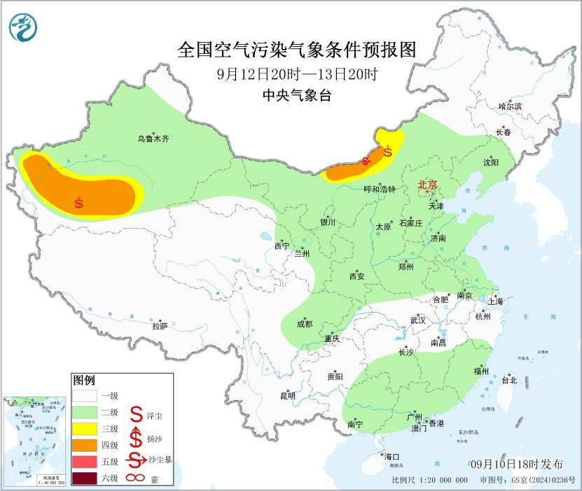 中新網(wǎng)9月10日電 據(jù)中央氣象臺(tái)網(wǎng)站消息,未來(lái)一周,全國(guó)大部地區(qū)大氣擴(kuò)散條件較好,無(wú)明顯霾天氣。13日內(nèi)蒙古中部偏北部分地區(qū)有沙塵天氣。