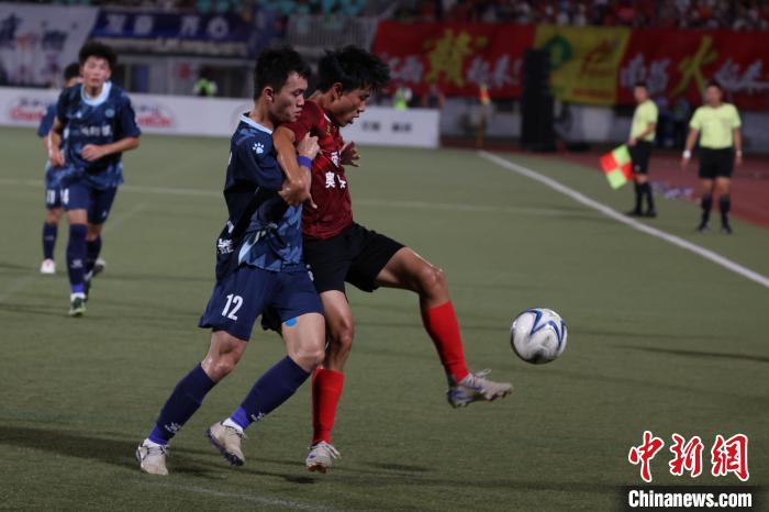 7月12日晚,“贛超”揭幕戰(zhàn)由東道主南昌隊迎戰(zhàn)景德鎮(zhèn)隊,雙方球員在綠茵場上激烈比拼。中新社記者 劉占昆 攝
