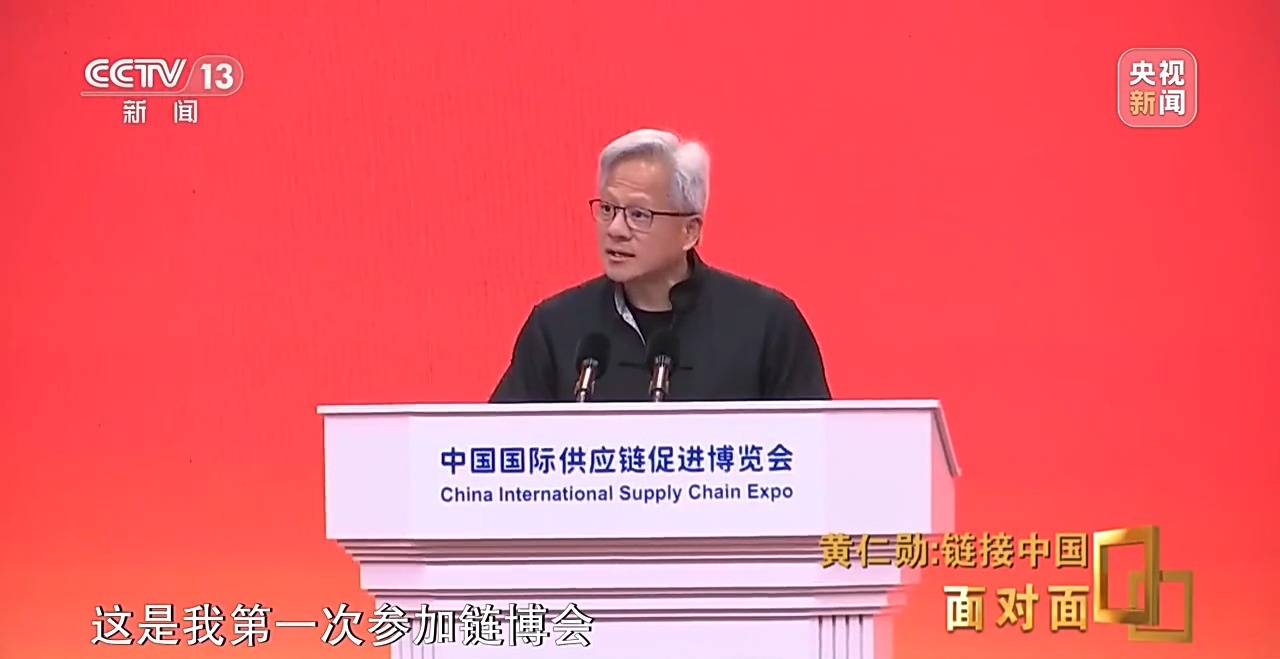 鏈博會(huì)開幕式上,黃仁勛沒有穿他那件標(biāo)志性的皮衣,而是身著唐裝,并用中文開場演講。