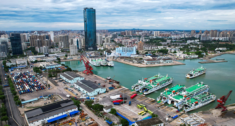 這是7月22日拍攝的恢復(fù)通航后的海口市秀英港(無(wú)人機(jī)照片)。