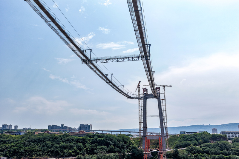 當日,由重慶城投集團投資、城投建設公司組織建設、中國鐵建大橋局承建的黃桷沱長江大橋順利完成主纜架設工作,標志著大橋建設即將進入鋼桁梁吊裝工序。黃桷沱長江大橋全長1260米,主跨765米,為單跨懸吊雙塔三跨連續(xù)鋼桁梁懸索橋,是國內(nèi)最大跨徑公軌兩用懸索橋。黃桷沱長江大橋是渝長高速復線連接道工程的控制性節(jié)點工程,建成后將成為聯(lián)系重慶主城區(qū)長江南北兩岸的重要交通干道。