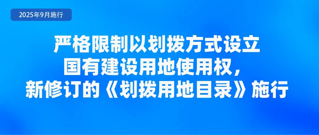 新修訂的《劃撥用地目錄》自2025年9月1日起施行。新修訂《目錄》明確,嚴格限制以劃撥方式設(shè)立國有建設(shè)用地使用權(quán)。符合本《目錄》,確需以劃撥方式使用土地的,由建設(shè)單位提出申請,經(jīng)有批準權(quán)的人民政府批準,方可以劃撥方式提供;建設(shè)單位提出或者同意以有償方式使用土地的,應(yīng)當(dāng)依法采取出讓、租賃等方式提供。
