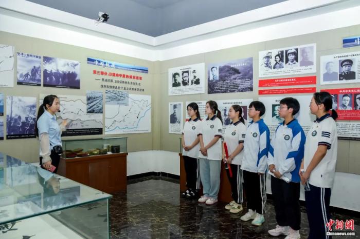 學(xué)生在漯河中州抗戰(zhàn)紀念館聆聽抗戰(zhàn)史。程耀旗 攝