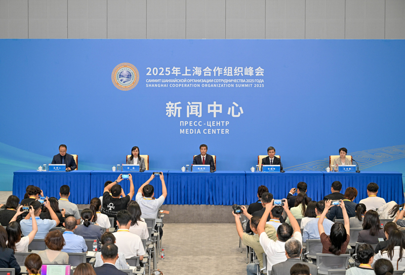8月28日,2025年上海合作組織峰會(huì)新聞中心舉行首場吹風(fēng)會(huì)。
