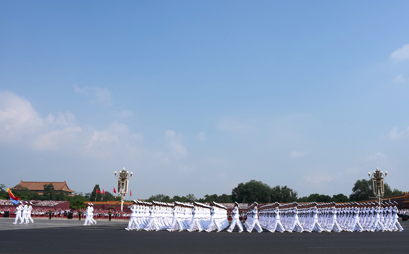 9月3日,紀念中國人民抗日戰(zhàn)爭暨世界反法西斯戰(zhàn)爭勝利80周年大會在北京隆重舉行。這是徒步方隊接受檢閱。