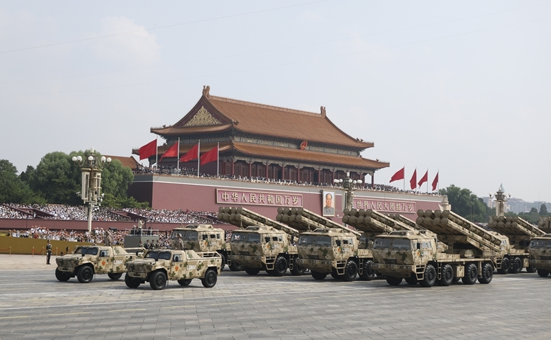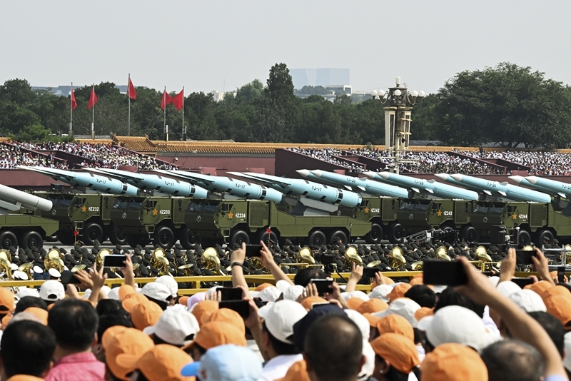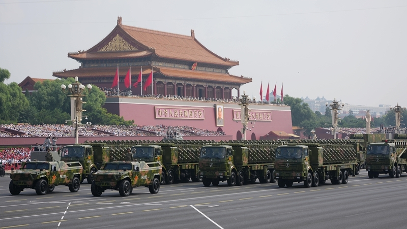 9月3日,紀(jì)念中國人民抗日戰(zhàn)爭(zhēng)暨世界反法西斯戰(zhàn)爭(zhēng)勝利80周年大會(huì)在北京隆重舉行。這是火箭軍方隊(duì)接受檢閱。
