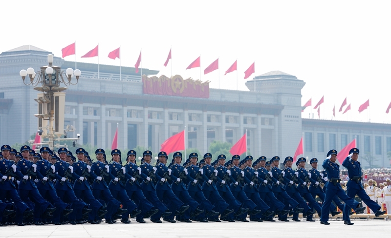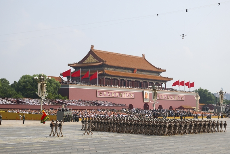 9月3日,紀(jì)念中國人民抗日戰(zhàn)爭(zhēng)暨世界反法西斯戰(zhàn)爭(zhēng)勝利80周年大會(huì)在北京隆重舉行。這是徒步方隊(duì)通過天安門廣場(chǎng)。