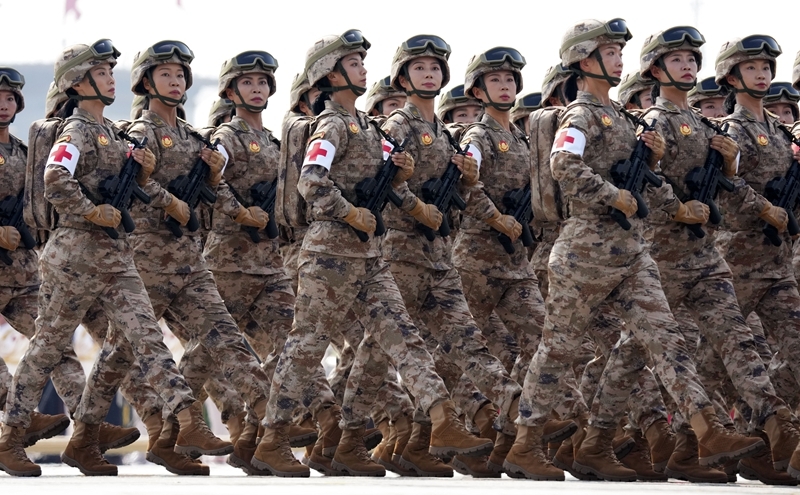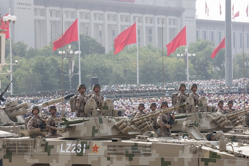 9月3日,紀(jì)念中國人民抗日戰(zhàn)爭(zhēng)暨世界反法西斯戰(zhàn)爭(zhēng)勝利80周年大會(huì)在北京隆重舉行。這是地面突擊方隊(duì)接受檢閱。