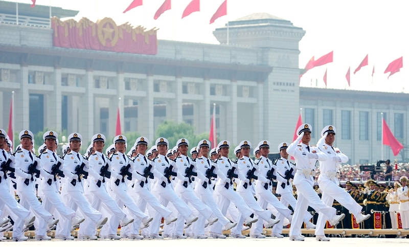9月3日,紀(jì)念中國人民抗日戰(zhàn)爭(zhēng)暨世界反法西斯戰(zhàn)爭(zhēng)勝利80周年大會(huì)在北京隆重舉行。這是海軍方隊(duì)接受檢閱。