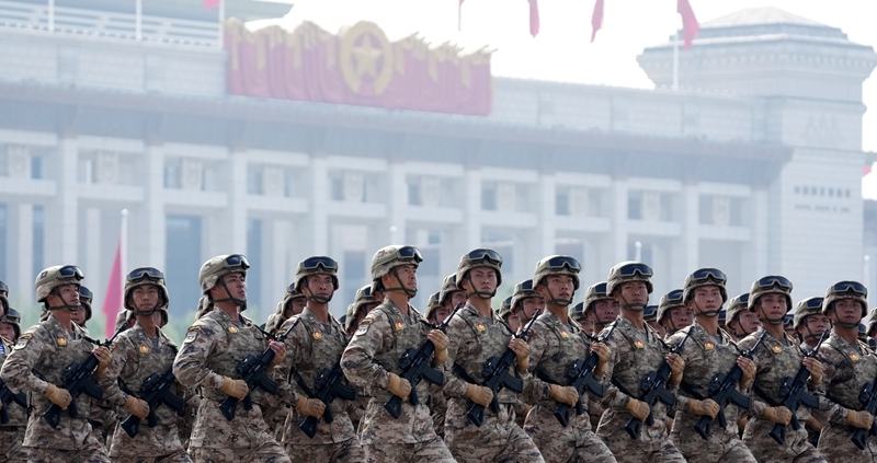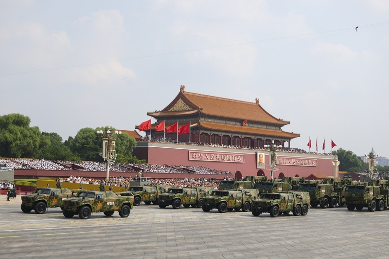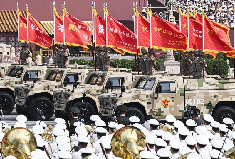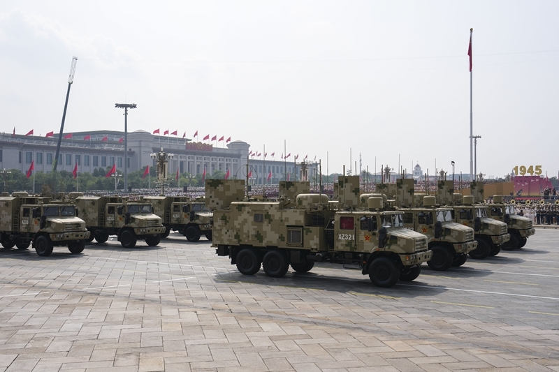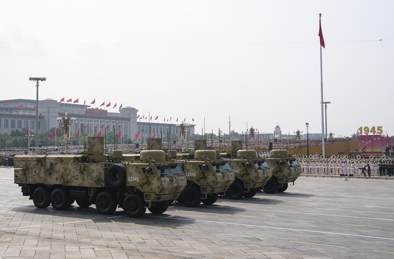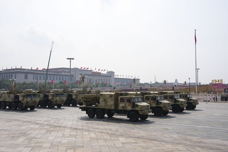 9月3日,紀(jì)念中國人民抗日戰(zhàn)爭(zhēng)暨世界反法西斯戰(zhàn)爭(zhēng)勝利80周年大會(huì)在北京隆重舉行。這是信息支援方隊(duì)接受檢閱。