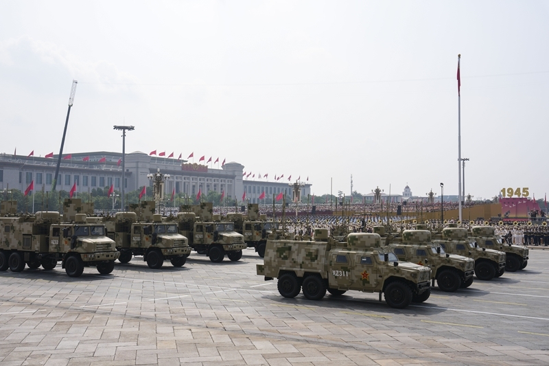 9月3日,紀(jì)念中國人民抗日戰(zhàn)爭(zhēng)暨世界反法西斯戰(zhàn)爭(zhēng)勝利80周年大會(huì)在北京隆重舉行。這是對(duì)空抗擊方隊(duì)接受檢閱。