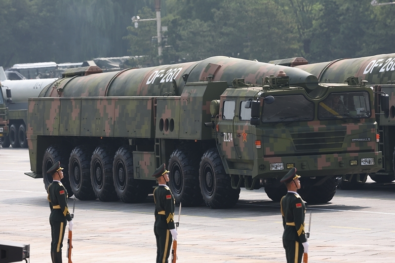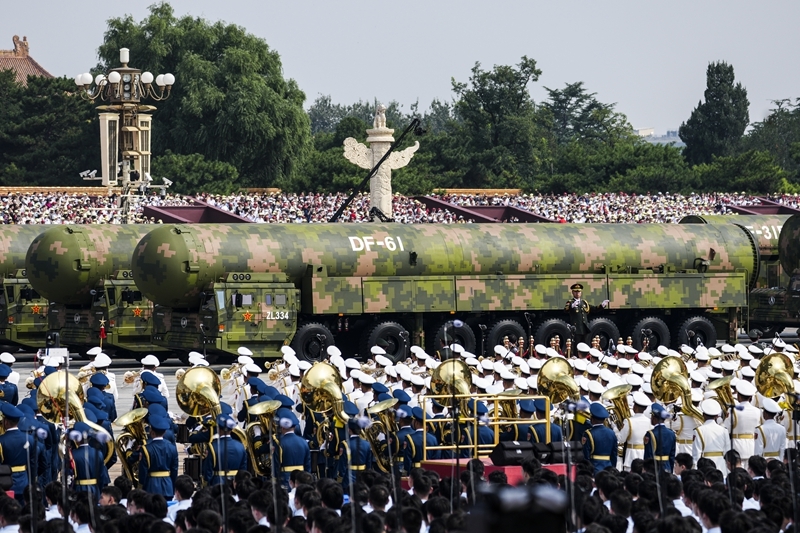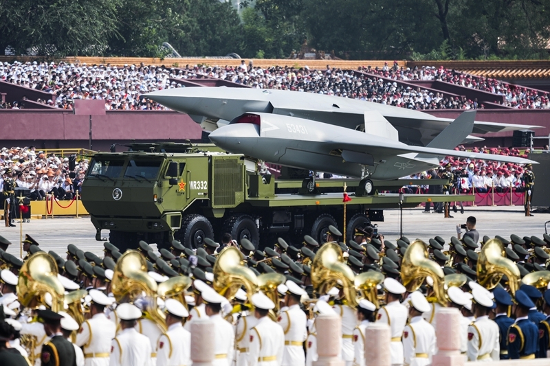 9月3日,紀(jì)念中國人民抗日戰(zhàn)爭暨世界反法西斯戰(zhàn)爭勝利80周年大會在北京隆重舉行。這是高超聲速導(dǎo)彈方隊接受檢閱。