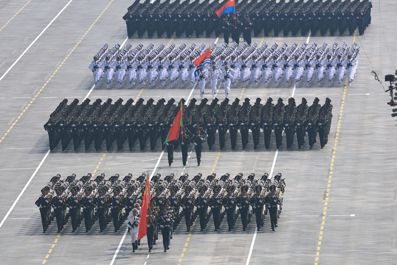 9月3日,紀(jì)念中國人民抗日戰(zhàn)爭暨世界反法西斯戰(zhàn)爭勝利80周年大會在北京隆重舉行。這是徒步方隊接受檢閱。