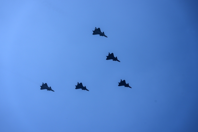 9月3日,紀(jì)念中國人民抗日戰(zhàn)爭暨世界反法西斯戰(zhàn)爭勝利80周年大會在北京隆重舉行。這是殲擊機梯隊接受檢閱。