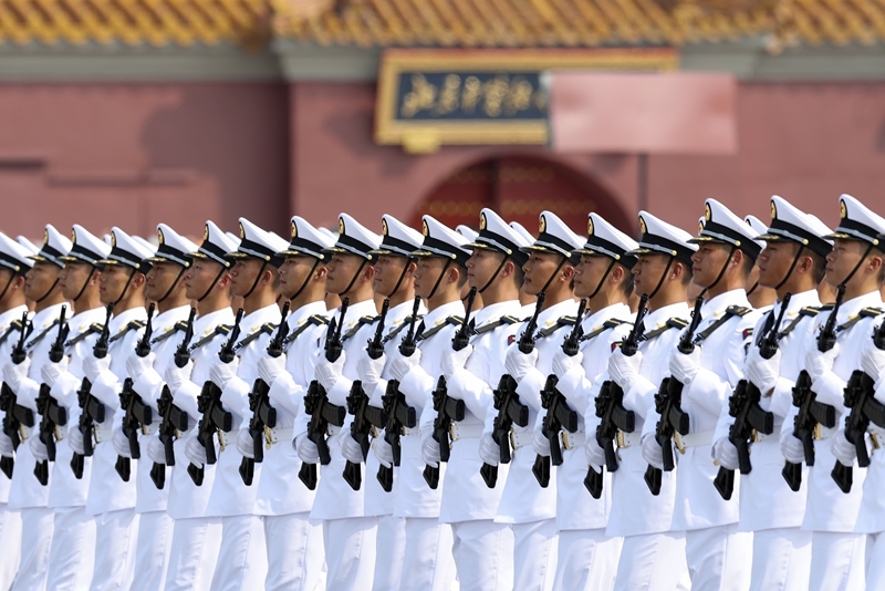 9月3日,紀(jì)念中國人民抗日戰(zhàn)爭暨世界反法西斯戰(zhàn)爭勝利80周年大會在北京隆重舉行。這是海軍方隊接受檢閱。
